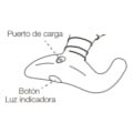 El cable puede ser conectado a cualquier puerto USB o adaptador de corriente USB/AC para empezar a cargarlo. Tardará aproximadamente 70 minutos en estar completamente cargado.