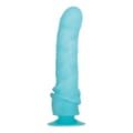 Este Dildo Amor Grande Azul Claro se adhiere a cualquier superficie mientras este seca y plana, además podrá usarlo en ducha o bañera, ya que es impermeable y sumergible.